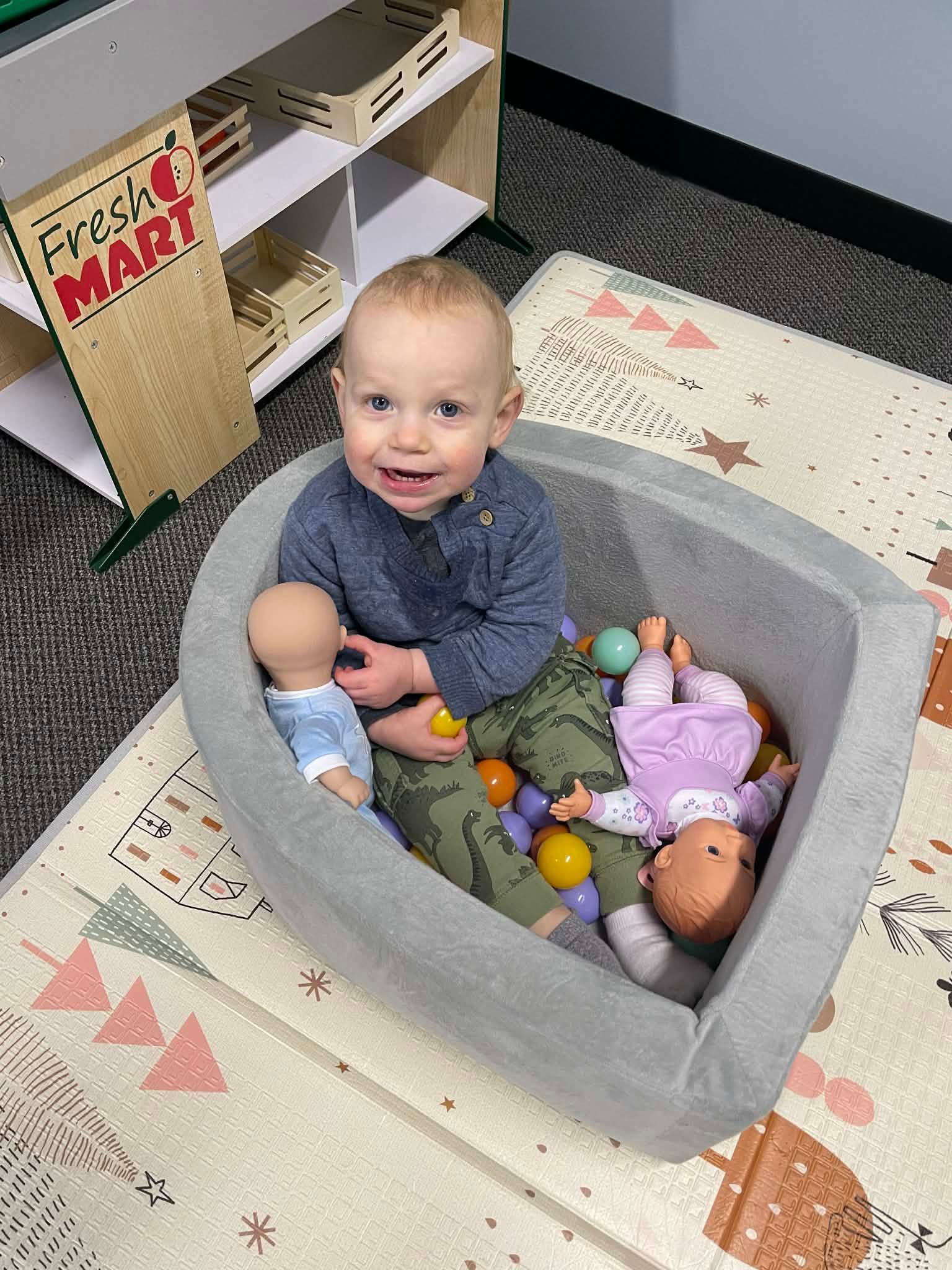 However, we know every child develops differently! If you have an older sibling who would still enjoy gentle, imaginative play in our space, we’re happy to welcome them in for play too! Our goal is to create a safe, comfortable environment where our littlest guests can explore confidently.
